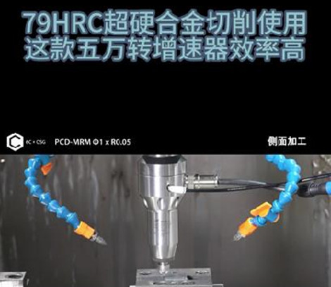 硬度高达79HRC的超硬合金铣削,使用常规主轴刀具加工效率非常慢,推荐这款五万转增速器 ,搭配PCD刀具进行高速切削加工,视频内可以看到,主轴以40000rpm的转速进行加工,而普通主轴是一万转,加工完后对比加工时间,足足提高了4倍的效率。