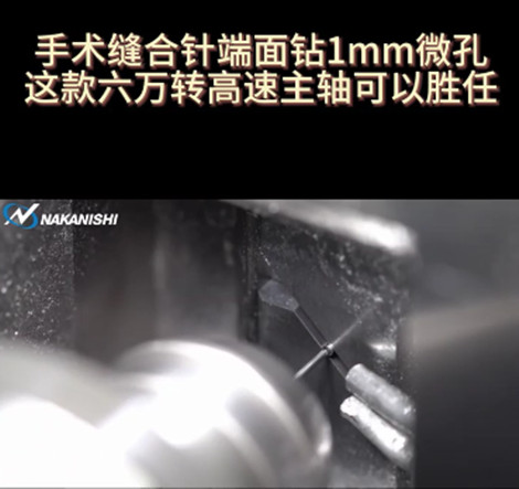 手术缝合针微孔,医疗级别不锈钢材料,1mm直径微孔,不仅要加工效率高,还要加工效果好?这款高速主轴 推荐使用,小体积,六万高转速,1μm高精度,安装在专机非常方便,大幅提高您的加工效率。